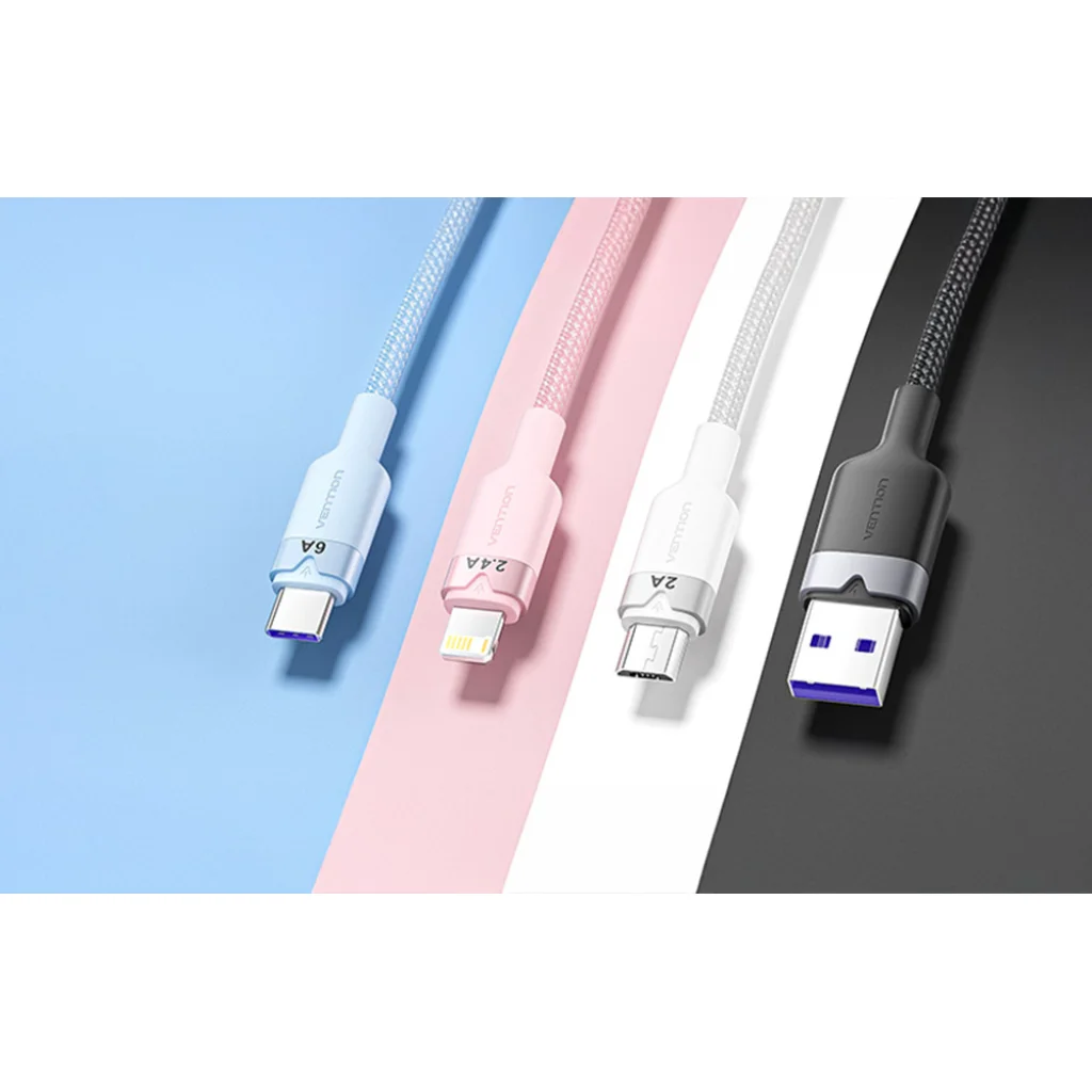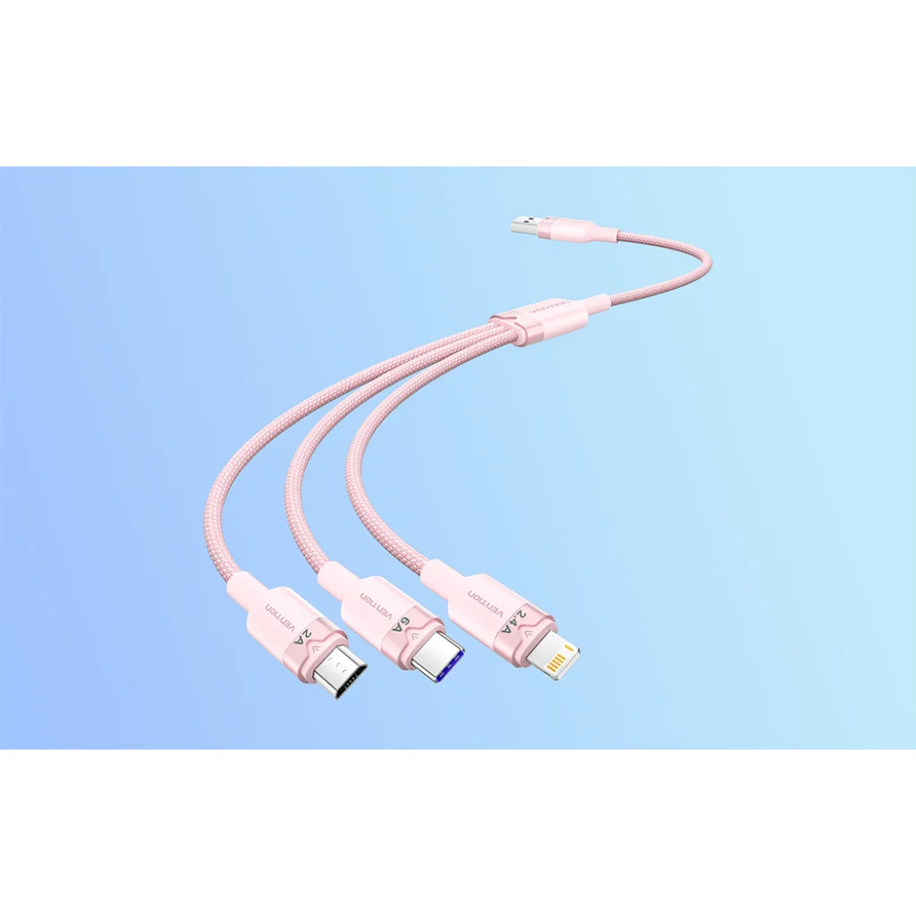 3 az 1-ben USB 2.0 A férfi - 6A kábel Vention CTRPG 1,5M (rózsaszín)