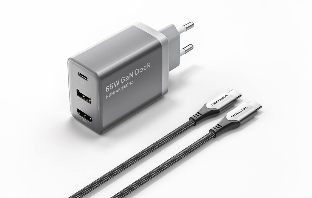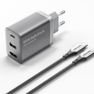 A Vention FJAH0-EU USB(C+A)+HDMI GaN hálózati töltő (60W/5W/4K@60Hz) (szürke) a modern technológia, sokoldalúság és biztonság tökéletes kombinációja. Kompakt kialakítása, fejlett töltési funkciói és széles körű kompatibilitása nélkülözhetetlen eszközzé teszik otthon és útközben egyaránt. A GaN technológiával, gyors adatátvitellel és három eszköz egyidejű töltésének képességével a Vention FEDB0-EU töltő fokozza a mindennapi munka és szórakozás kényelmét és hatékonyságát. Válaszd a Vention FJAH0-EU-t, és élvezd a megbízható, gyors és biztonságos áramellátást az eszközeid számára bárhol, bármikor!