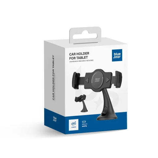 A BLUE STAR széles autós tartó akár 13 hüvelykes tabletek és nagyobb okostelefonok (4 hüvelyk fölött) számára. A masszív szerkezet, széles karok és a stabil rögzítési rendszer biztosítják a készülékének biztonságos tartását, akár városban autózik, akár hosszabb utakat tesz meg. A széles, állítható karok lehetővé teszik a 4-13 hüvelyk közötti eszközök rögzítését. A tartó ideális navigáció, multimédiás vagy üzleti használatra útközben, teljes sokoldalúságot kínálva. Az erős rugó biztonságos tartást nyújt, a tartók a strapabíró rugóval szorosan tartják a tabletet vagy okostelefont a helyén, megakadályozva a mozgást még egyenetlen úton is. A tartó felszerelhető a szélvédőre vagy a műszerfalra, lehetővé téve, hogy a jármű belsejében állítsa be a helyzetét, javítva a használhatóságot. Az állítható fej teljesen 360 fokban forgatható, lehetővé téve az eszköz függőleges vagy vízszintes pozícióba állítását, ideális navigációhoz és multimédiához. Specifikáció: Eszköz kompatibilitás: 4-13 hüvelyk, Rögzítési hely: szélvédő / műszerfal, Tartó rögzítési mód: tapadókorong, Eszköz tartás: rögzítőkapcsok, Forgatható fej: 360 fok, Anyag: ABS.