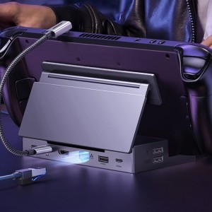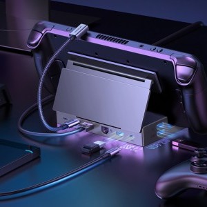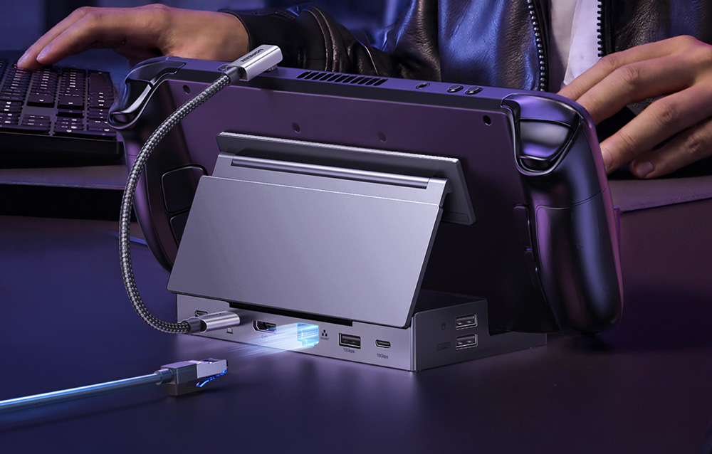 Az adapter kialakítása összecsukható és 180°-ig állítható, így kényelmesen a megfelelő szögben helyezheti el a készüléket. A csúszásmentes szilikon fokozza a stabilitást, az okos kialakítás pedig nem akadályozza a szellőzőnyílásokat, például a Steam Deckben. További bónusz a levehető USB-C kábel, amely megkönnyíti a szállítást és az asztali hely rendezését.