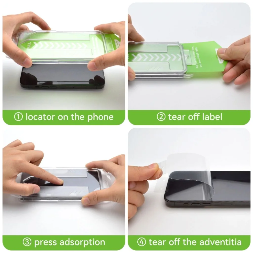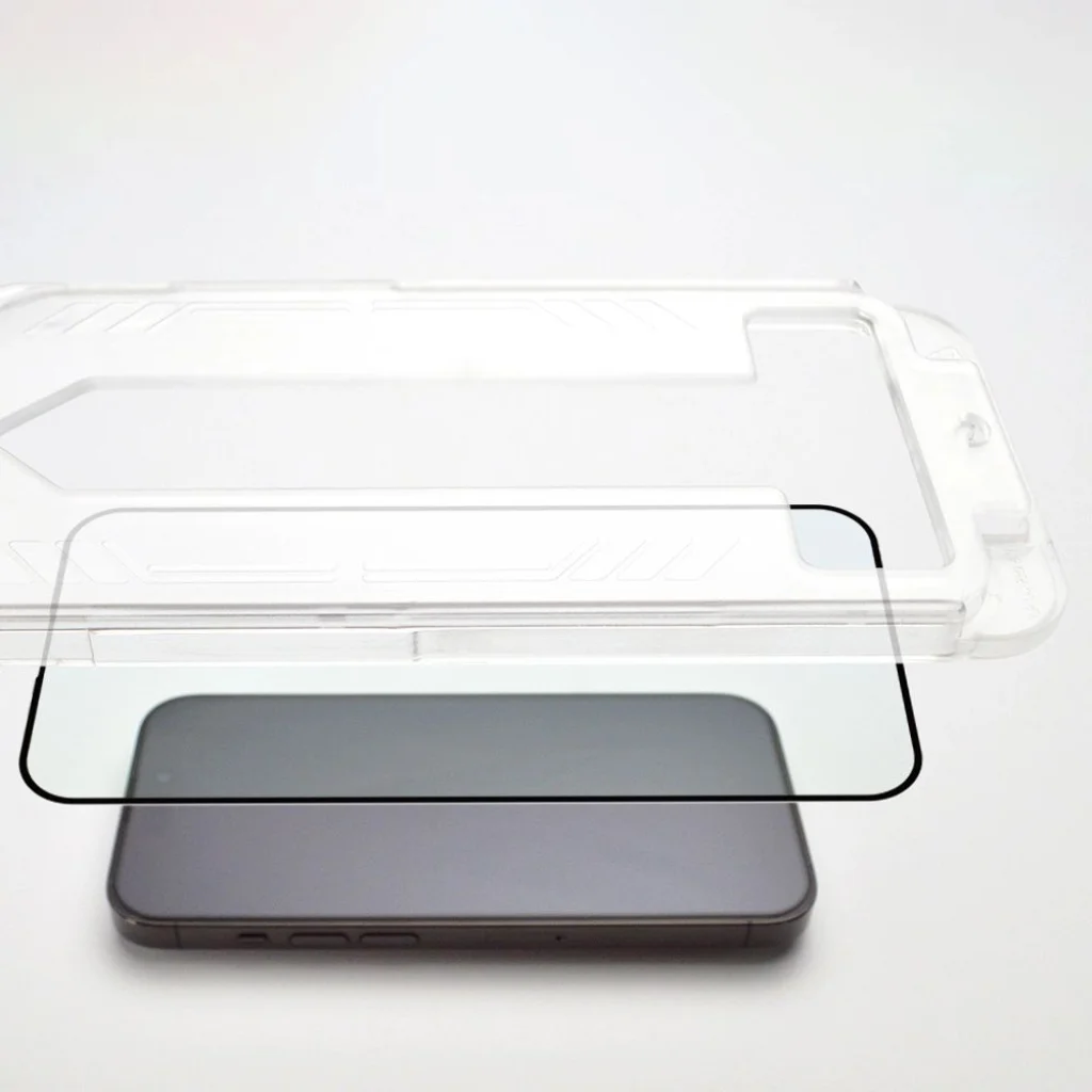 - Helyezze a keretet az üveggel a telefon elülső részére.