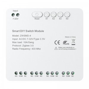 Avatto ZWSMMD 4 csatornás ZigBee kapcsolómodul 32V-os feszültségmentes érintkezővel 6 200 Ft Termék adatlap