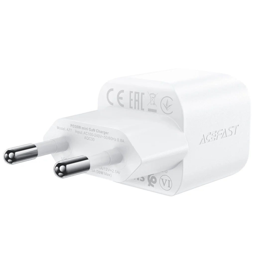 Acefast A77 Mini 30W GaN hálózati töltő Power Delivery technológiával + USB-C kábel - fehér