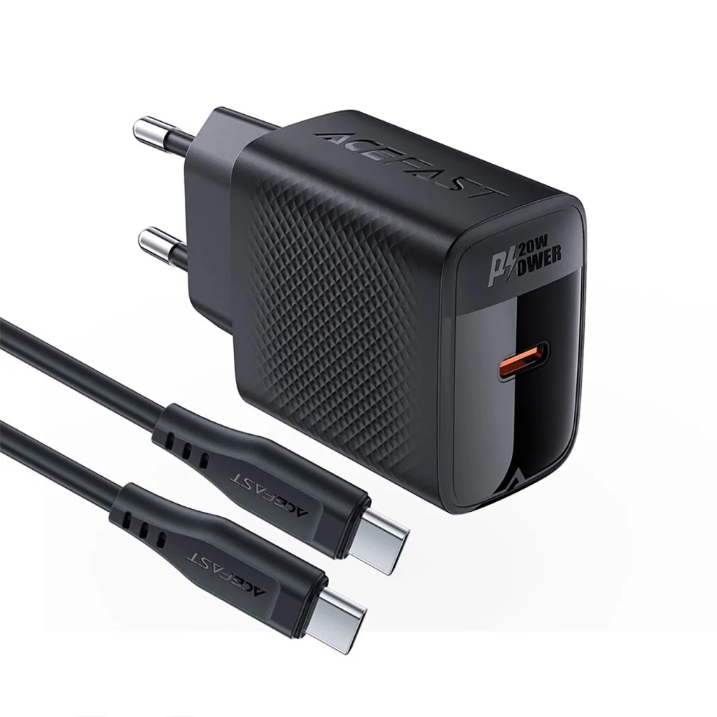 Az Acefast A82 falra szerelhető töltő USB-C porttal akár 20W teljesítményt biztosít fekete színben (USB-C / USB-C kábel mellékelve). Szeretnéd gyorsabban feltölteni eszközeidet? Az Acefast A82 fali töltő 20W teljesítményt nyújt a gallium-nitrid használatának köszönhetően, miközben minimalizálja a hőtermelést, ami biztonságosabb használatot eredményez. Ideális okostelefonok, tabletek, fejhallgatók és sok más eszköz számára. A szett része egy praktikus 1,2 m-es USB-C / USB-C kábel, amely kényelmet és sokoldalúságot biztosít.