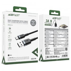 Az Acefast C22-04 USB-A – Type-C adatkábel a megbízhatóságot és a hatékonyságot ötvözi, hogy eszközei mindig felkészülten várják a feladatokat. Ez a 1,2 méter hosszú, fekete színű kábel nem csupán gyors töltést biztosít, hanem stabil adatátvitelt is garantál, mindezt kiemelkedő tartóssággal és széles körű kompatibilitással párosítva.