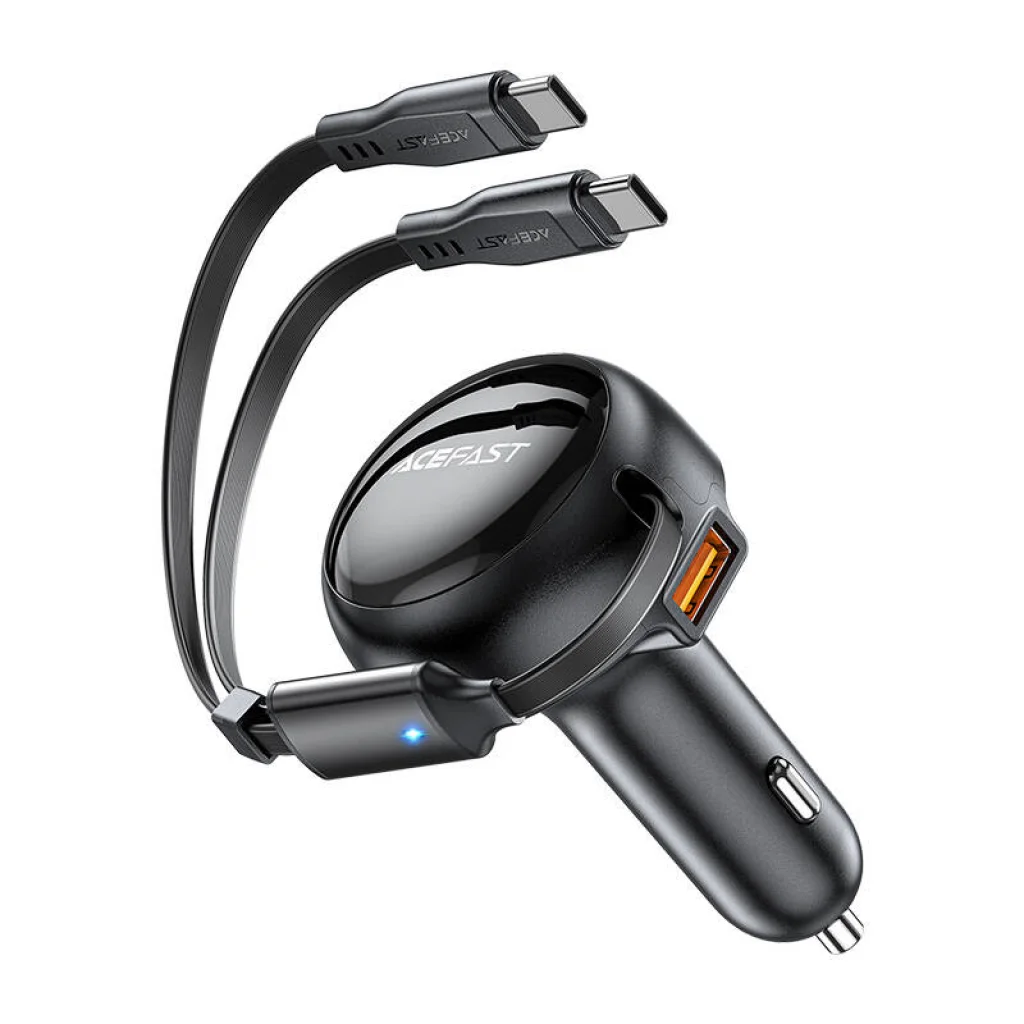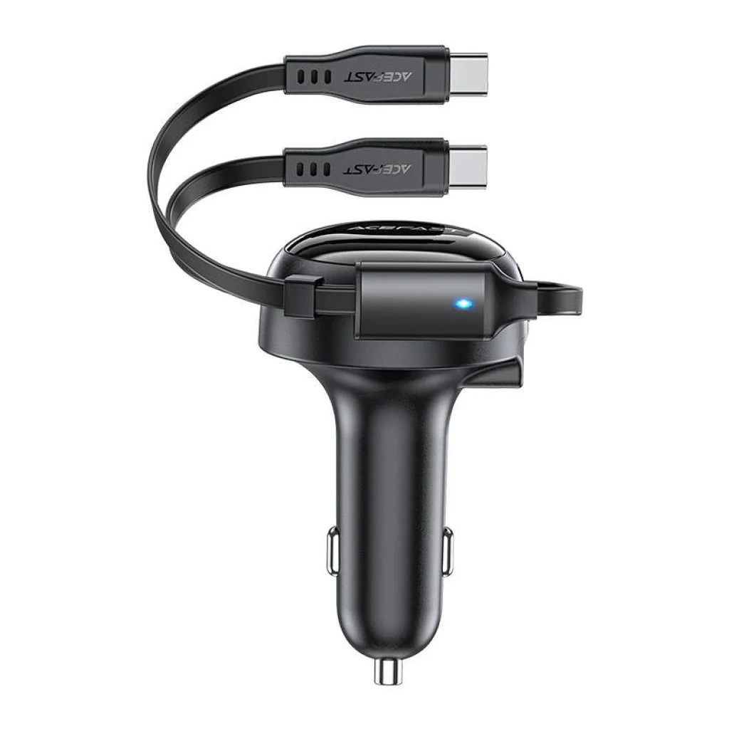 Az Acefast B13 autós töltő egy sokoldalú és hatékony megoldás azoknak a sofőröknek, akiknek gyorsan kell tölteniük eszközeiket útközben. Biztonságot nyújt, és visszahúzható kábelkialakításának köszönhetően rendben tartja az autót. Két USB-C porttal, egy USB-A porttal és egy két USB-C csatlakozós kábellel van felszerelve, amely lehetővé teszi több eszköz egyidejű, gyors és kényelmes töltését, akár 53W teljesítménnyel.