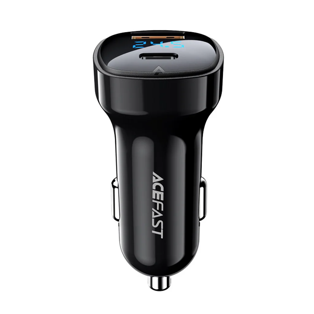 Acefast autós gyorstöltő. 2 portja van, USB Type C és USB. Az első C típusú USB-csatlakozó maximum 36 W-os, az USB-csatlakozó pedig 30 W-os teljesítményű töltést tesz lehetővé. Lehetővé teszi a gyors töltést, többek között PPS, Power Delivery, Quick Charge 3.0, AFC és FCP szabványok esetén. Egyszerre 2 eszköz csatlakoztatható hozzá. Tűzálló PC anyagból készült. Számos védelemmel van ellátva, mint például túlmelegedés, túlfeszültség, nagyfeszültség vagy túlterhelés.