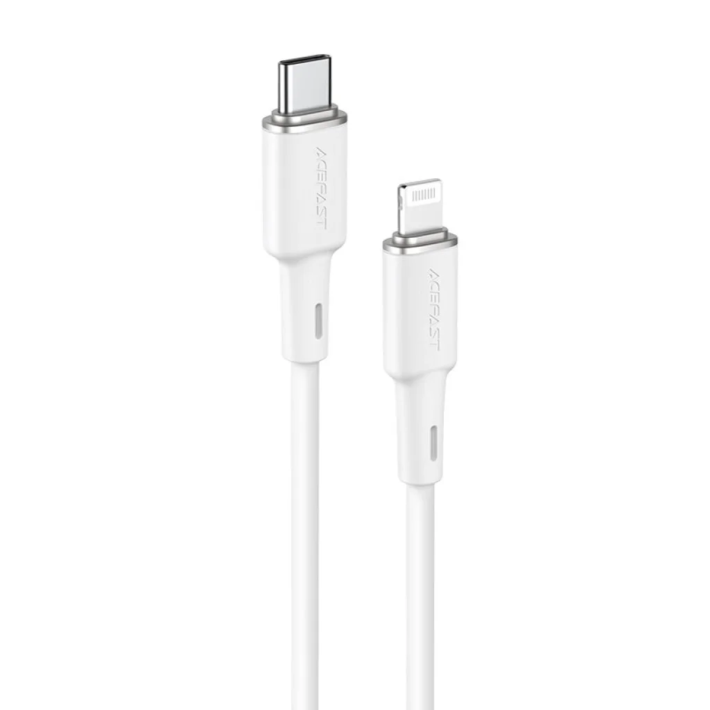 Acefast USB Type C - Lightning kábel töltéshez és adatátvitelhez. Lightning csatlakozóval rendelkező Apple eszközökhöz készült. 120 cm hosszú és 30W és 3A áramerősséggel működik. Kompatibilis a Power Delivery gyorstöltéssel. MFI (Maide For iPhone) tanúsítvánnyal rendelkezik, így a telefon nem jelenít meg üzenetet a nem eredeti tartozékról.