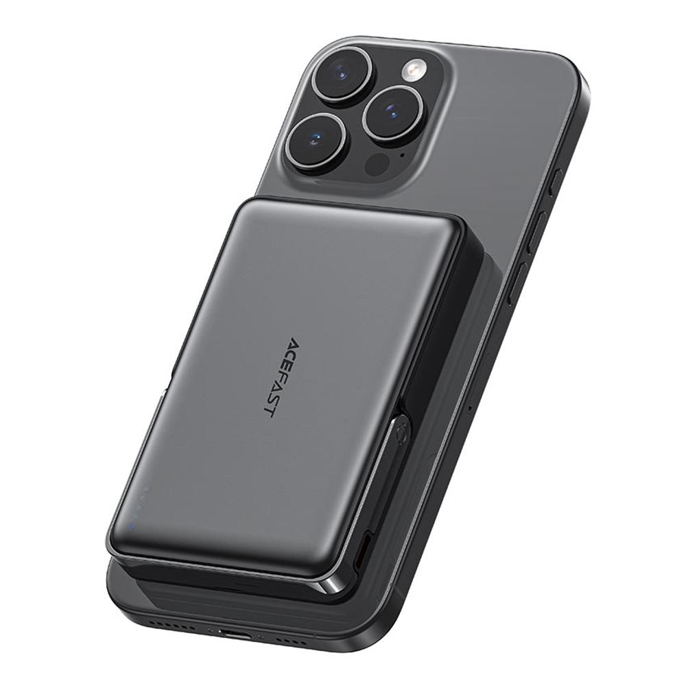 Az Acefast M17-10000 egy rendkívül sokoldalú és nagy teljesítményű mágneses vezeték nélküli power bank, amely nem csupán gyors töltést biztosít készülékeinek, hanem beépített, összecsukható állványának köszönhetően kényelmes médiafogyasztást is lehetővé tesz. Elegáns fekete színben és ultravékony kialakításban érkezik, hogy tökéletesen illeszkedjen mindennapi használatához.