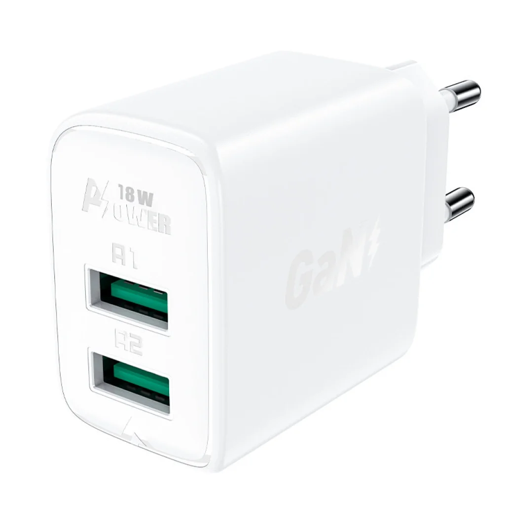 Acefast töltő 2x USB 18W QC 3.0, AFC, FCP fehér (A33 fehér)