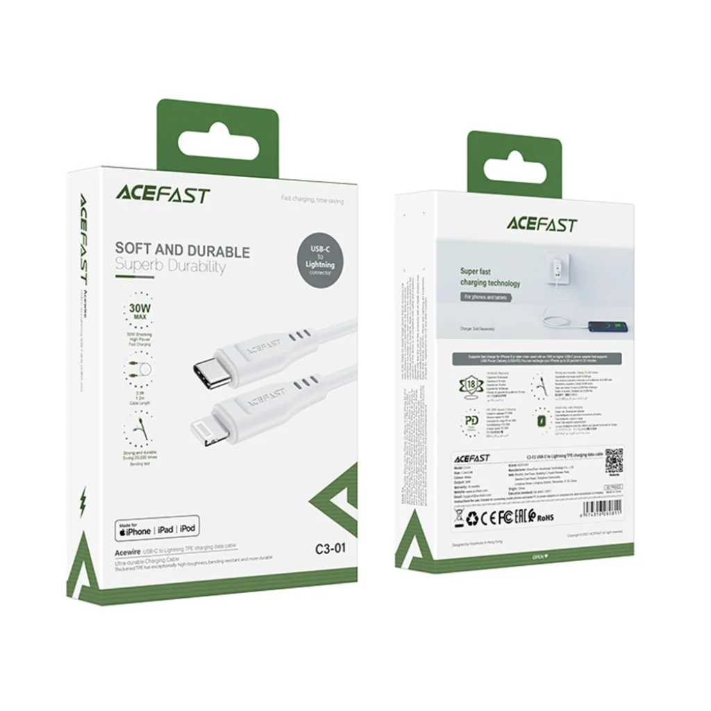 - Elegáns design: A letisztult fehér szín és az Acefast márkajelzés modern és professzionális megjelenést kölcsönöz a kábelnek, diszkréten illeszkedve eszközeidhez.