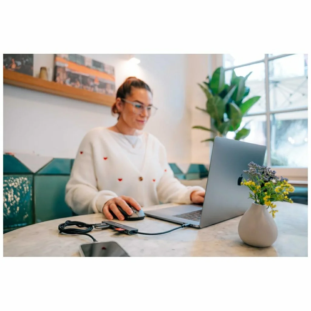 A Verbatim adapter hét sokoldalú portot kínál: HDMI, USB-C PD 3.0, 2x USB-A 3.2 Gen 1, USB-C 3.2 Gen 1, és SD/microSD kártyaolvasók. A portok lehetővé teszik külső monitorok, USB meghajtók, okostelefonok és más eszközök csatlakoztatását a laptophoz. Megbízható partner irodai munka során, üzleti úton, vagy otthon – tökéletes azok számára, akik egy kompakt eszközben értékelik a funkcionalitást és a stílust.