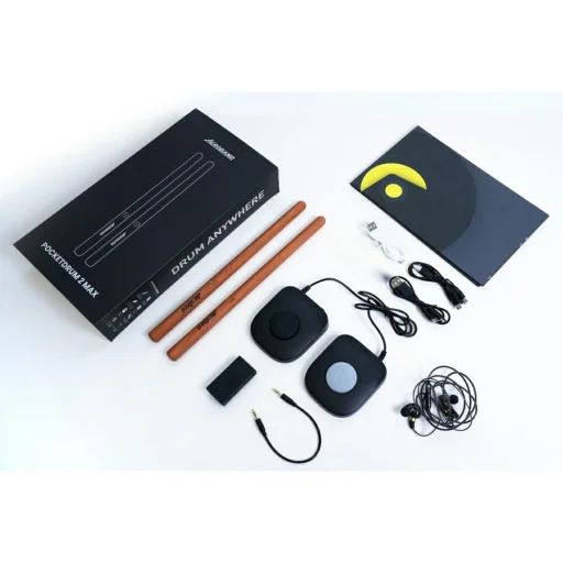 Fedezd fel a dobolás új dimenzióját az AeroBand PocketDrum 2 Max hordozható elektronikus dobfelszereléssel! Ez a forradalmi eszköz tökéletes választás minden dobosnak, a kezdőktől a tapasztalt profikig, akik szabadságra és rugalmasságra vágynak. Felejtsd el a terjedelmes, zajos dobokat és a bonyolult beállításokat. A PocketDrum 2 Max-szal elegendő megfogni a stílusos, barna színű, fa erezetű ütőket, csatlakoztatni a kompakt pedálokat, és máris készen állsz a játékra – otthon, útközben, próbák során, stúdióban, vagy akár a szabadban, ahogy a mellékelt képeken is látható.