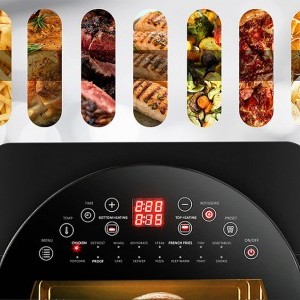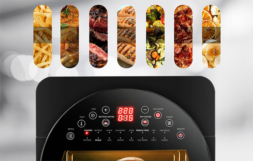 Az Air Fryer nemcsak funkcionalitásával, hanem gondosan átgondolt designjával is lenyűgöz. Nagy ablakkal van felszerelve, amely lehetővé teszi a sütési folyamat nyomon követését anélkül, hogy fel kellene nyitnia a fedelet. Kapacitása eléri a 14 litert - így nem kell aggódnia a helyhiány miatt vagy a részenkénti sütés szükségességétől - az Air Fryer mindent elhelyez, amire szüksége van. A beépített kijelző megkönnyíti az eszköz használatát. Segítségével könnyedén beállíthatja az időt vagy a hőmérsékletet, valamint módosíthatja a főzési módot. Emellett könnyedén tisztítható.