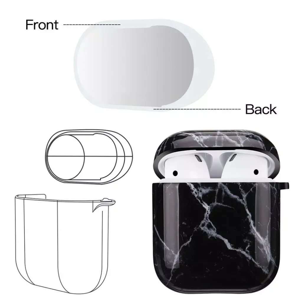 AirPods 1/2 márvány mintás tok fekete Alphajack (AC25)