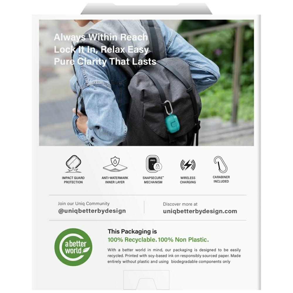 Kivételes védelem és stílus jellemzi az UNIQ Glase Pro tokot az AirPods számára is, amely a masszív védelem és az egyedi stílus ötvözete. Kiváló minőségű anyagokból készült, így kiváló védelmet nyújt a karcolások és ütések ellen, miközben a készülék egyedi megjelenést kap általa. A tok teljes 360º-os védelmet biztosít, minden részét hatékonyan óvja. A precíz kivitelezésnek köszönhetően az UNIQ tok biztonságérzetet nyújt anélkül, hogy veszélyeztetné a készülék funkcionalitását, kényelmes hozzáférést biztosítva a fejhallgatókhoz, portokhoz, hangszórókhoz és párosítógombhoz.