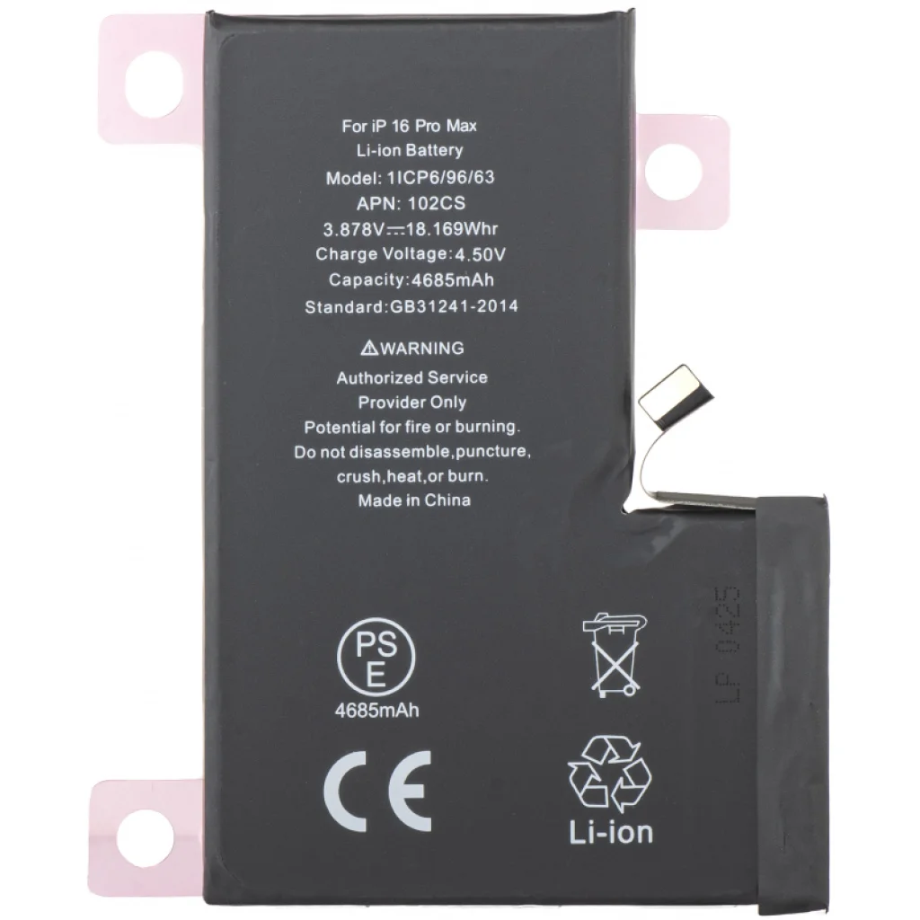 Akkumulátor Apple iPhone 16 Pro Max-hoz. Ez az utángyártott akkumulátor kifejezetten az Apple iPhone 16 Pro Max modellhez készült cserealkatrész.4685mAh kapacitásával megbízható energiaellátást biztosít, hogy készüléke egész nap működőképes maradjon. Tökéletes választás azok számára, akik eredeti akkumulátorukat szeretnék lecserélni, vagy tartalék akkumulátorra van szükségük. Ez az akkumulátor optimális teljesítményt és hosszú élettartamot garantál. Tartsa iPhone-ját mindig feltöltve és használatra kész állapotban ezzel a megbízható csereakkumulátorral.