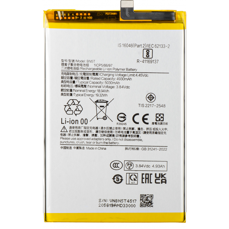 Az Akkumulátor BN5T Xiaomi Poco M6 4G / Redmi 13-hoz egy kiváló minőségű utángyártott akkumulátor, amelyet arra terveztek, hogy könnyedén visszaállítsa készüléke erejét és megbízhatóságát. Akár akkumulátorromlással küzd, akár csak egy megbízható tartalékra van szüksége, ez az akkumulátor költséghatékony és hatékony megoldást nyújt, hogy telefonja a legjobb teljesítményt nyújtsa. Az eredetivel megegyező kapacitású, hosszú élettartamú teljesítményt és zökkenőmentes működést biztosít, garantálva a következetes és megbízható élményt – pontosan úgy, mint a gyárilag telepített változat.