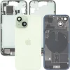 Akkumulátor fedél középső kerettel Apple iPhone 15 számára - Zöld Kivett (A minőség). Tartalék alkatrész Apple licenc alatt, amelyet a sérült alkatrész cseréjére használnak a telefonon. Tartalmazza a középső keretet, oldalsó gombokat, kamera lencsét és vakuüveget.