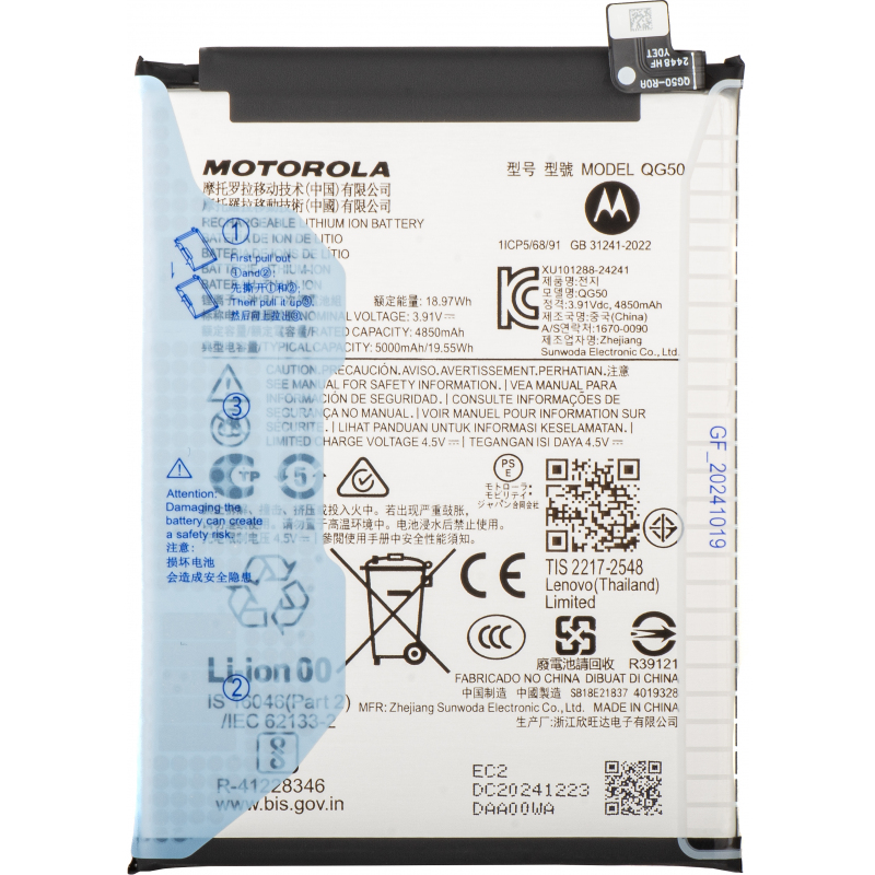 Az Akkumulátor QG50 Motorola Moto G35-hez egy Motorola licenc alapján készült pótalkatrész, amelyet a telefonod meghibásodott akkumulátorának cseréjére használhatsz. Cseréld ki a régi akkumulátort, és szereld fel a telefonodat egy új, eredeti akkumulátorral, amely biztosítja a szükséges energiát.