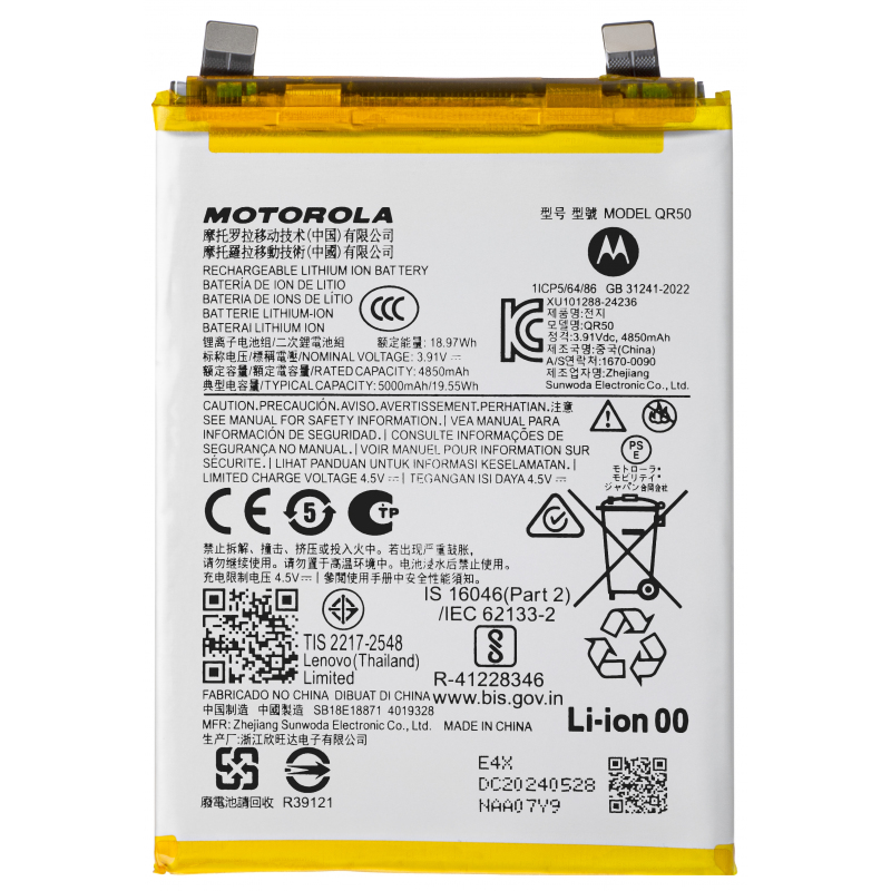 Az akkumulátor QR50 a Motorola Edge 50-hez licencelt pótalkatrész, amelyet a telefonon sérült akkumulátor cseréjéhez használnak. Cserélje le a régi akkumulátort, és lássa el telefonját egy új, eredeti akkumulátorral, amely biztosítja a szükséges energiát.