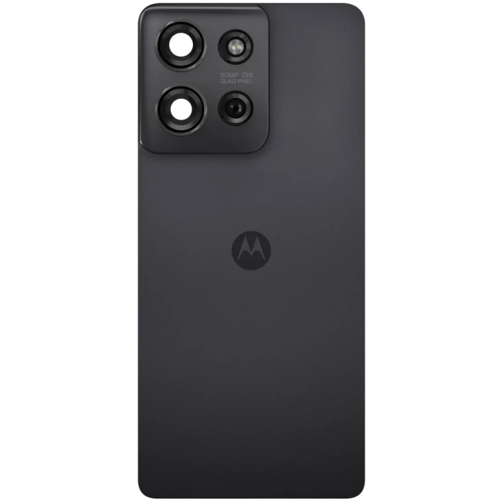 Akkumulátorfedél Motorola Moto G75 - Szénszürke. Ez a Motorola licencelt pótalkatrész a telefon sérült részének cseréjére szolgál. Tartalmazza a ragasztót.