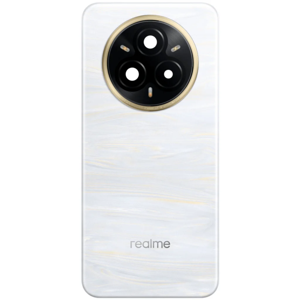 Akkumulátorfedél Realme 14 Pro+ telefonhoz - gyöngyházfehér. Eredeti Realme licenc alapján készült pótalkatrész, amellyel a sérült alkatrész cserélhető a telefonon. Tartalmazza a ragasztót és a kameravédőt.