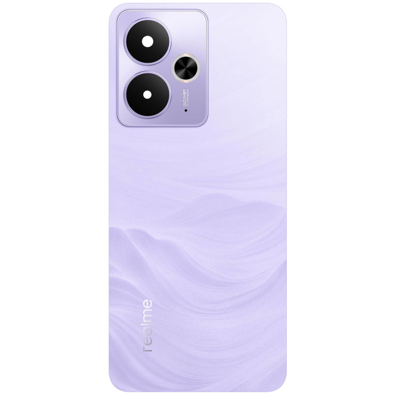 Akkumulátorfedél Realme 14T-hez - Villám Lila. Realme által licenszelt alkatrész, amelyet a telefon sérült részének cseréjére használnak. Tartalmaz ragasztót és kamerafedelet.