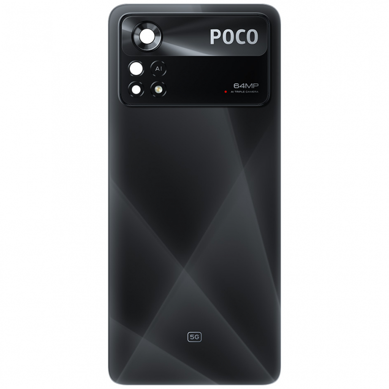 Akkumulátorfedél Xiaomi Poco X4 Pro 5G-hez - Lézerfekete. Cserealkatrész Xiaomi engedélyezéssel, a sérült alkatrész cseréjére a telefonon. Tartalmaz ragasztót, kameravédő lencsét és vaku üveget.