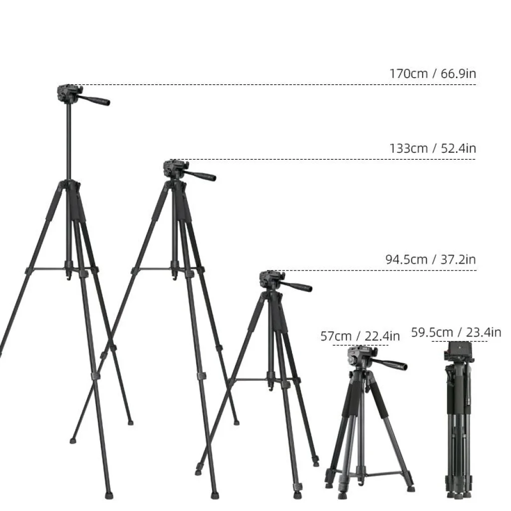 Az állvány magasságának 57 cm-től 170 cm-ig való változtathatósága hatalmas előny, amely lehetővé teszi a felszerelés alkalmazkodását mind álló, mind mobil használatra. Tökéletes portré- és tájképfotózáshoz egyaránt. Ez a beállítás lehetővé teszi, hogy a legjobb pillanatokat különböző perspektívákból és magasságokból örökítsd meg, ami elengedhetetlen az egyedi és professzionális fotók készítéséhez.