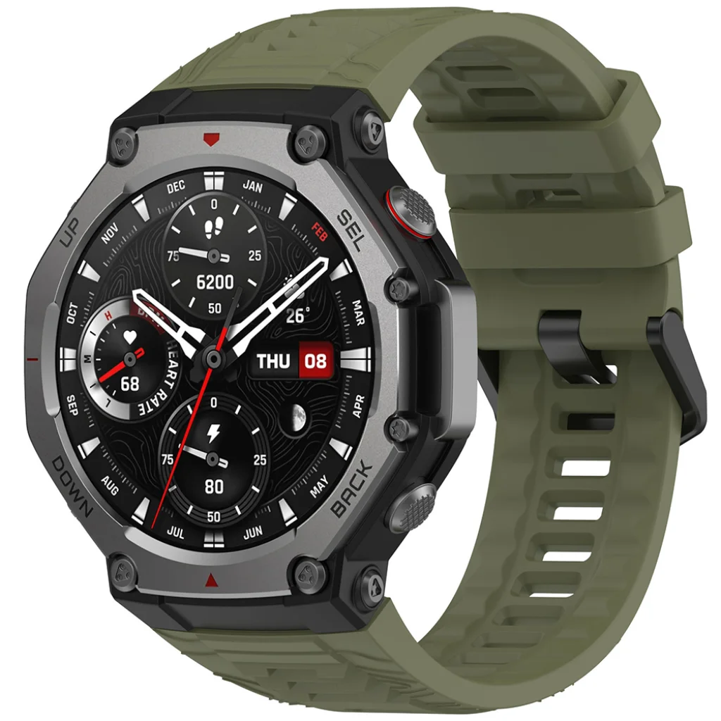 Emelje új szintre Amazfit T-Rex 3 okosóráját a strapabíró és stílusos Techsuit (W067) óraszíjjal! Ez a jellegzetes katonai zöld színű szilikon szíj tökéletes választás azoknak, akik aktív életmódot élnek, és nem kötnek kompromisszumot a kényelem vagy a tartósság terén.