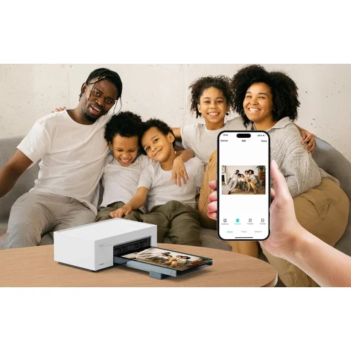 A nyomtató iOS, Android, PC és Mac számítógépekkel is kompatibilis. Az univerzális USB-C port stabil vezetékes kapcsolatot biztosít, és az akár öt felhasználó egyidejű támogatásának köszönhetően a buli minden résztvevője elküldheti kedvenc felvételét nyomtatásra. A közös emlékek galériájának létrehozása még soha nem volt ilyen egyszerű és inkluzív.
