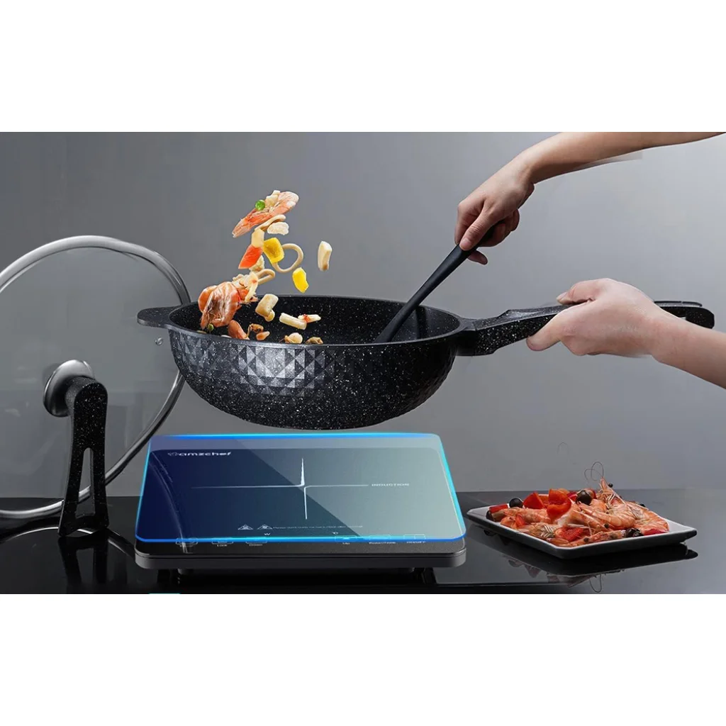Az AMZCHEF CB16-BK ultravékony kialakítása tökéletesen illeszkedik a modern konyhákba. Kompakt méretei (350 x 280 x 44,5 mm) kiváló megoldást kínálnak kis helyekre, energiahatékonyságot kínálva anélkül, hogy sok helyet foglalna. Sőt, a kályhát feketére csiszolt kristályüveggel hozták létre, ami nemcsak eleganciát ad, hanem karcállóvá és mesésen könnyen tisztíthatóvá is teszi.