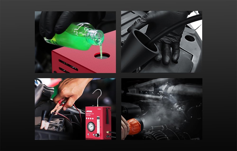 Az Ancel S3000 füstgenerátora sűrű és stabil füstöt termel, amely hatékonyan láthatóvá teszi a szivárgási helyeket, még a kisebbeket is. A tesztfolyamat 20 ml tesztolaj beöntése után kezdődik, ami gyors és pontos diagnózist tesz lehetővé a rendszer szétszerelése nélkül, időmegtakarítást eredményezve és elkerülve a működő alkatrészek téves cseréjét.