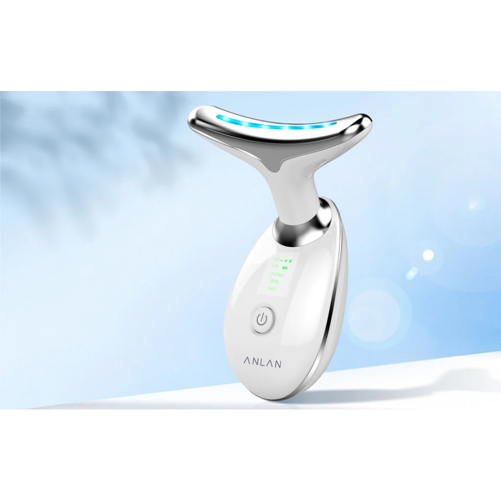 Az ANLAN elektromos nyakmasszírozója sima, feszes és láthatóan megfiatalodott bőrt biztosít. Több üzemmóddal rendelkezik a bőr átfogó ápolása érdekében. Lehetővé teszi a mélytisztítást és EMS masszázst is nyújthat. 45°C hőmérséklettel és három színben - piros, kék és zöld - világító fénnyel hat a bőrre. Ionok hatását is kihasználja. Tartós, 500 mAh kapacitású akkumulátorral van felszerelve.