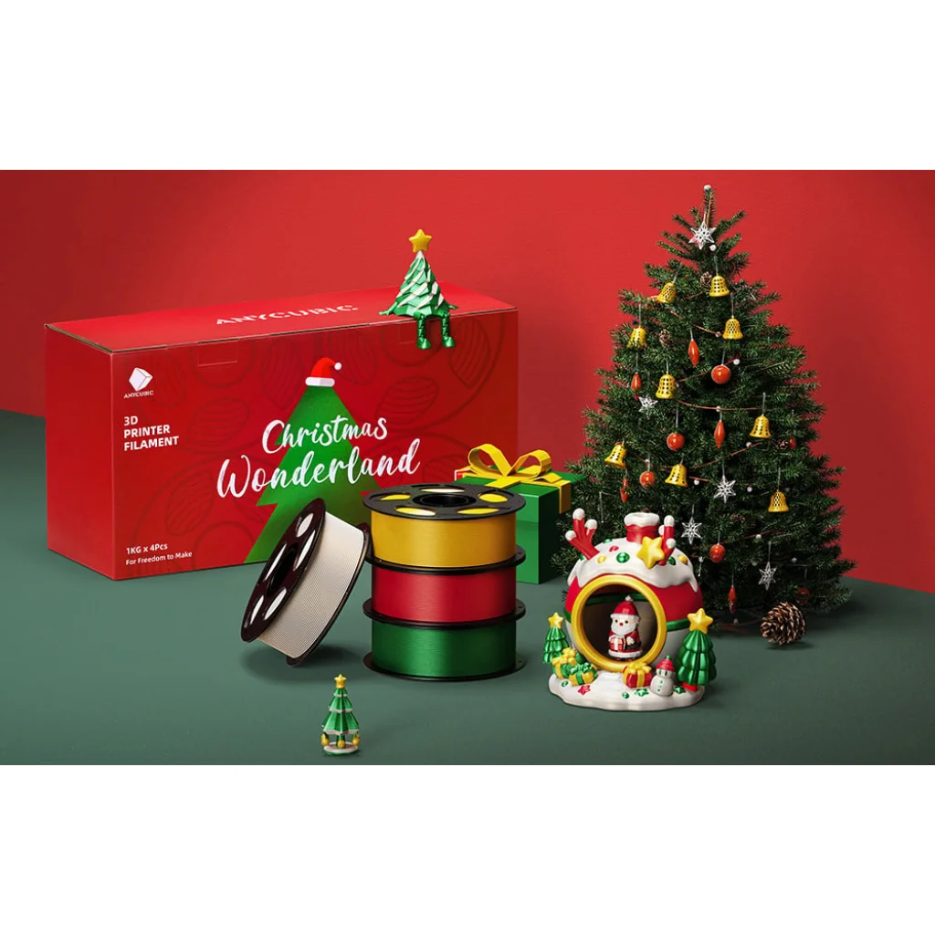Az Anycubic karácsonyi PLA filament készlet lehetővé teszi, hogy kreatív projekteket hozzon létre az ünnepekre és azon túl is. Az anyag intenzív, élénk színeket és selymes fényt kínál, így ideális karácsonyfadíszek, dekorációk és ajándékok nyomtatásához. Az anyag kiváló minősége segít olyan nyomatok készítésében, amelyek azonnal szemet gyönyörködtetőek, és az a képesség, hogy a nyomtatási paraméterek megváltoztatásával szabályozhatja a modellek megjelenését, teljes szabadságot biztosít a végső hatás kialakításában. A készletben négy tekercs PLA Silk filamentet talál ünnepi színekben: fehér, piros, zöld és arany. A termék kompatibilis a piacon kapható legtöbb FDM 3D nyomtatóval.