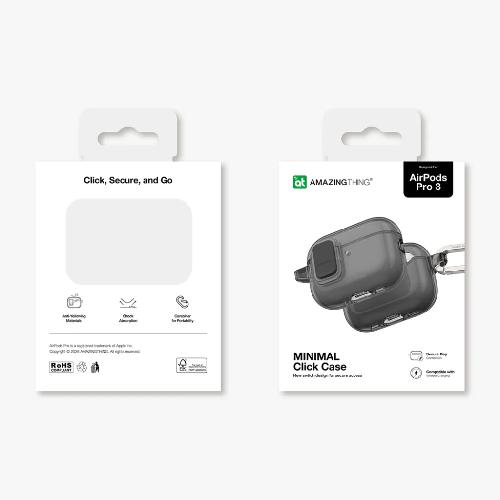 Az AmazingThing Minimal tok egyesíti a védelmet és a stílust – fedezd fel klasszikus fekete színben. Ez nem csupán egy tok – egy átgondolt kiegészítő, amely megóvja a fülhallgatóidat és megkönnyíti a mindennapi használatot. Tartós TPU bevonatának köszönhetően az AirPods Pro 3 hatékony védelmet kap a karcolások, por és kisebb ütődések ellen. A tok támogatja mind a vezetékes, mind a vezeték nélküli töltést – nem kell eltávolítanod a feltöltéshez. Az erős mágnesek és a belső zármechanizmus stabil rögzítést biztosítanak, megelőzve a véletlen lecsúszást. A mellékelt karabiner növeli a kompakt hordozhatóságot, lehetővé téve a fülhallgatók rögzítését hátizsákhoz, övhöz vagy kulcstartóhoz. A kompakt, minimalista dizájn lenyűgöz finomságával és precizitásával. Szerezz be egy tokot, amely nemcsak védi, hanem lehetőséget ad arra is, hogy bemutasd a fülhallgatóid eredeti megjelenését.
