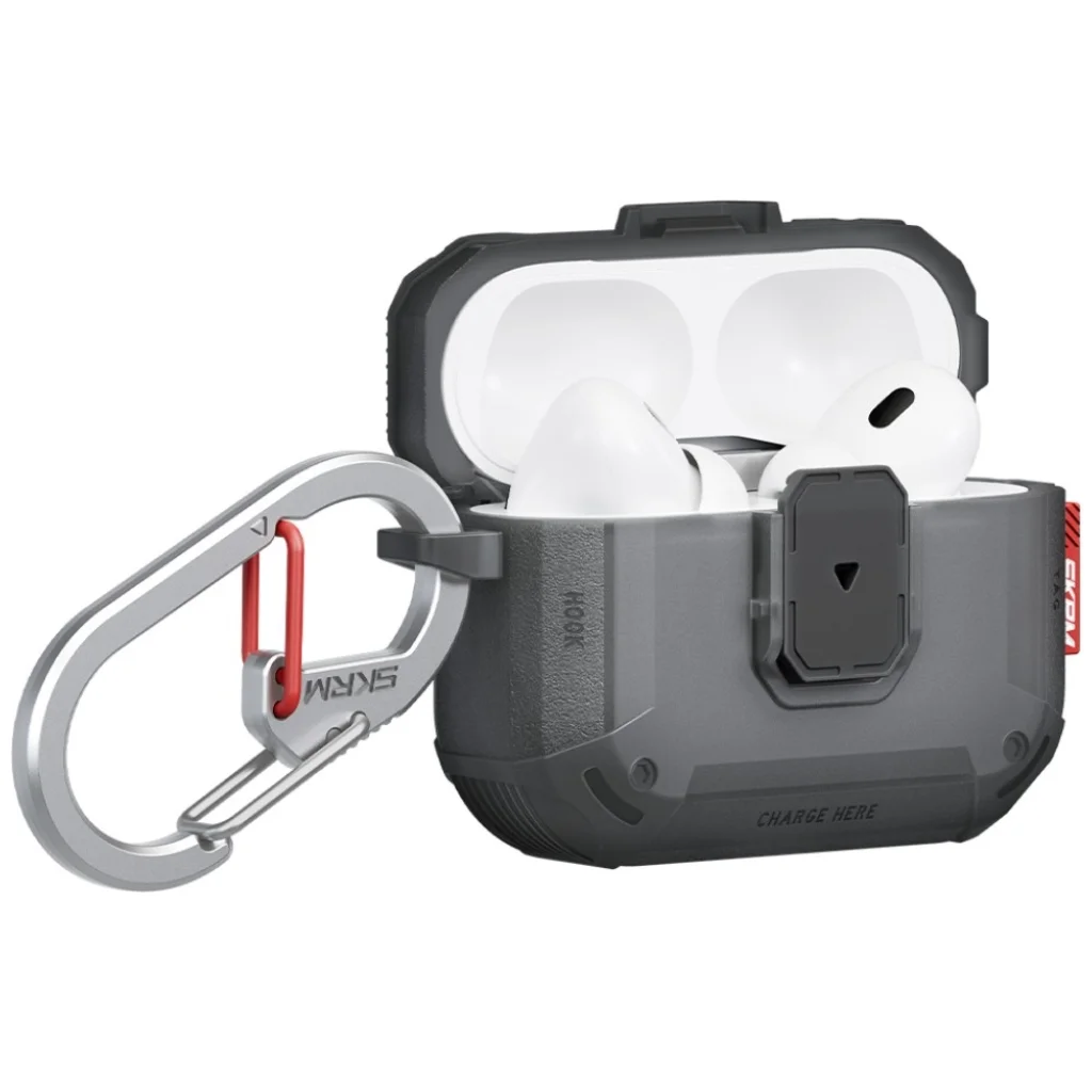 A kreatívan kialakított tokot mindennapi használatra tervezték, és tartozékként egy funkcionális karabiner található benne. A karabiner segítségével biztonságosan rögzíthető az AirPods a táskára, hátizsákra vagy az övre, így mindig kéznél lehet. A tok biztonságos zárja megakadályozza az AirPods véletlenszerű esését.