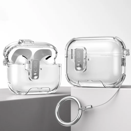 A Tech-Protect Bounce Pro egy fejlett védőtok, amely hatékony védelmet nyújt többfunkciós használat mellett. Tartós, átlátszó szilikonból készült, amely megvédi a töltőtokot a karcolásoktól, ütésektől és a mindennapi kopástól, miközben megőrzi a fülhallgatók eredeti dizájnjának láthatóságát. A mágneses zár továbbfejlesztett biztonsági retesz-konstrukcióval még könnyebbé és biztonságosabbá teszi a tok nyitását és zárását, védve a fülhallgatókat a véletlen nyitástól és leeséstől. A funkciókba közé tartozik az állítható tartó is, amely lehetővé teszi a fülhallgatók kényelmes vízszintes behelyezését filmnézés vagy videóhívás közben. Az erősített sarkok elnyelik az ütéseket, megakadályozva a tok sérülését. A precíziós kivágások teljes hozzáférést biztosítanak a töltőporthoz és a párosítási gombhoz anélkül, hogy eltávolítanák a védelmet. A csomag praktikus karabinerrel ellátott szíjat is tartalmaz, amely lehetővé teszi a tok rögzítését kulcsokhoz, hátizsákhoz vagy övpánthoz, biztosítva állandó hozzáférést a fülhallgatókhoz.