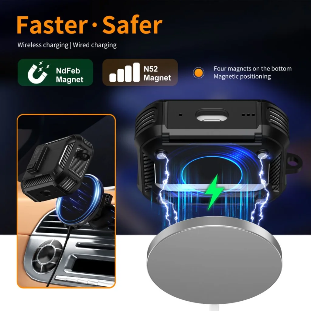 A Tech-Protect Carbonox védőtok ideális megoldás azok számára, akik fontosnak tartják a teljes biztonságot és az elegáns stílust. Ez a masszív, páncélos tok kiváló minőségű TPU és PC anyagokból készült, amelyek maximális védelmet nyújtanak az ütésekkel, karcolásokkal és ujjlenyomatokkal szemben. Az innovatív zár biztonságos gombbal garantálja a fedél könnyű nyitását és zárását, biztosítva a fülhallgatók védelmét minden helyzetben. A Carbonox tok lehetővé teszi mind a vezetékes, mind a vezeték nélküli töltést, így nem szükséges levenni a tokot a fülhallgatók feltöltéséhez. Ráadásul teljesen kompatibilis a MagSafe rendszerrel, ami lehetővé teszi a mágneses kiegészítők gyors és kényelmes használatát a tok levétele nélkül. A rendkívül funkcionális design látható elülső LED-diódát tartalmaz. A tok további előnye a strapabíró, levehető karabineres kulcstartó, amely lehetővé teszi a tok kényelmes rögzítését kulcsokra, táskára vagy övre. Emellett telefonállvány funkcióval is ellátták, amely lehetővé teszi a telefon stabil helyzetbe állítását – ideális megoldás filmnézéshez, videohívásokhoz vagy multimédia használatához. A Tech-Protect Carbonox megbízható védelem, kényelem és modern funkcionalitás egyben – ideális választás aktív életmódot élők és stílusos megjelenést kedvelők számára.