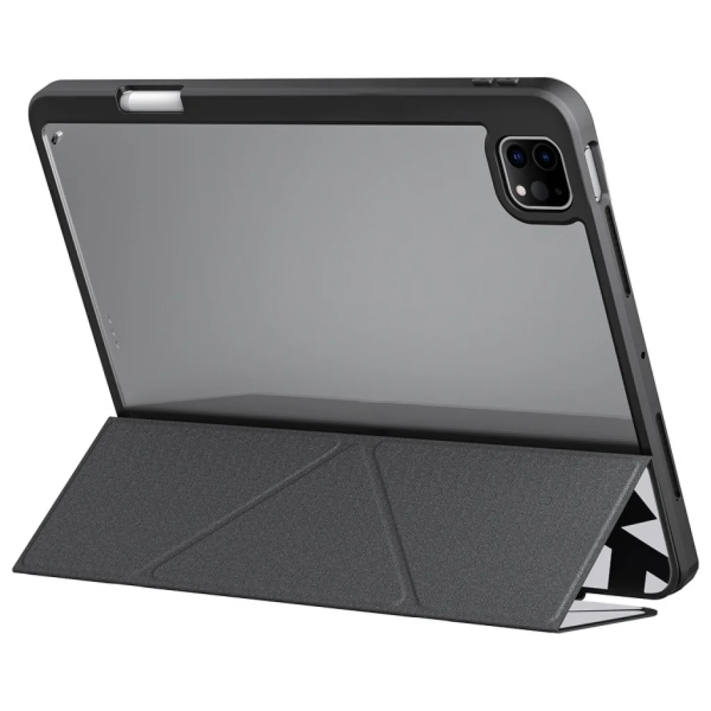 Kivételes funkcionalitás. A tok levehető Y-hajtogatott borítóval rendelkezik, lehetővé téve az iPad elhelyezését tájképi és portré módban is. Ez a kéz nélküli használatot kényelmessé teszi – tökéletes megoldás filmnézéshez vagy munkához. A mágneses záródás stabilitást és biztonságot nyújt, míg a beépített nyílás az Apple Pencil számára egyszerű tárolást biztosít a stylusnak.