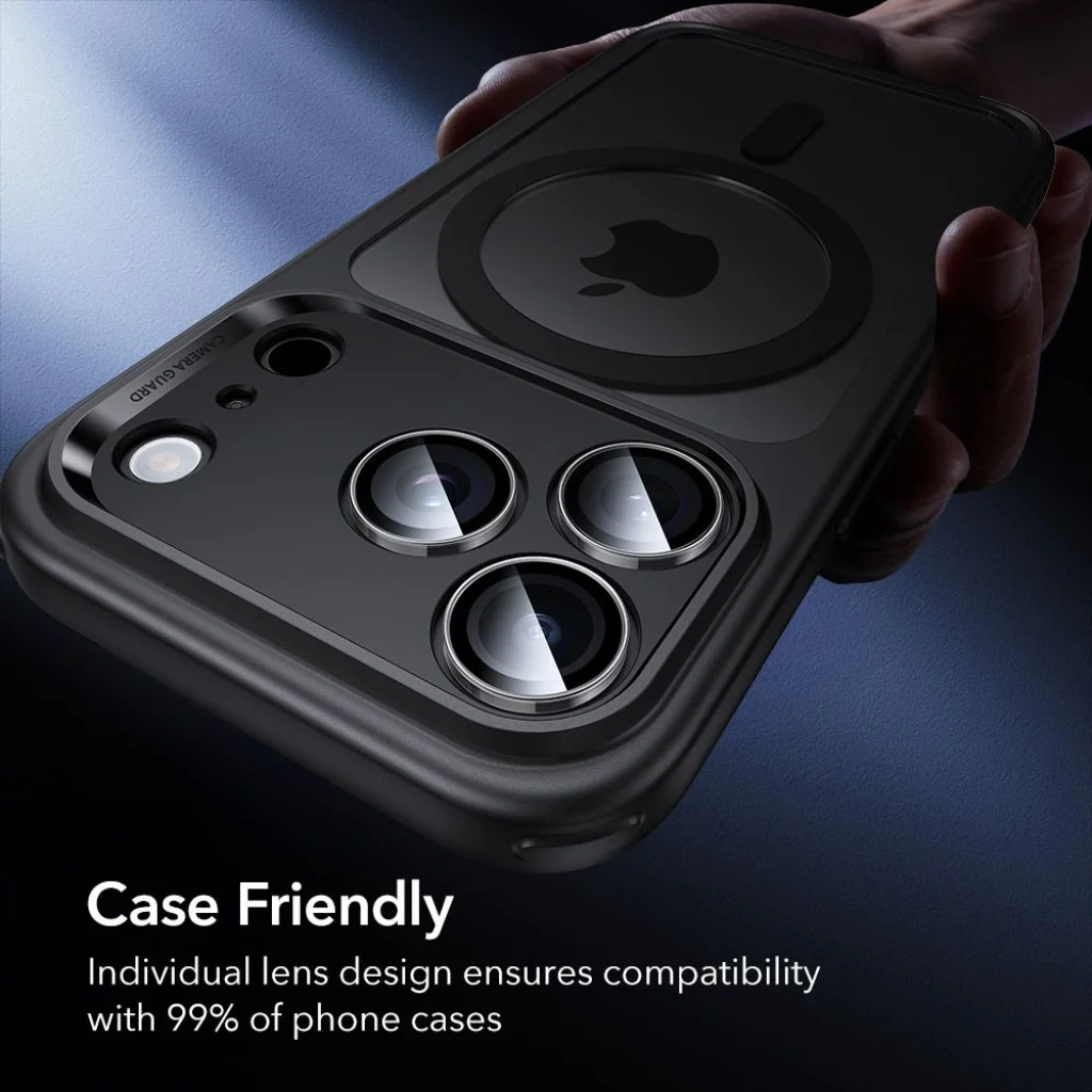 - **Tokbarát kialakítás:** Az egyedi lencsevédő design garantálja a kompatibilitást a telefontokok 99%-ával, így nem kell kompromisszumot kötnie a védelem és a stílus között.