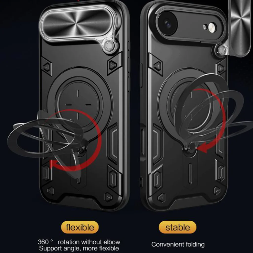 - 360°-ban forgatható gyűrűs állvány: Az integrált gyűrű könnyedén, 360 fokban elforgatható, így bármilyen szögben kényelmesen használható állványként. Ideális videók nézéséhez (vízszintes képernyő) vagy videóhívásokhoz és böngészéshez (függőleges képernyő), otthon és munkahelyen egyaránt. Hajtogatható kialakítása miatt stabil és kényelmesen elrejthető, amikor nincs rá szükség.
