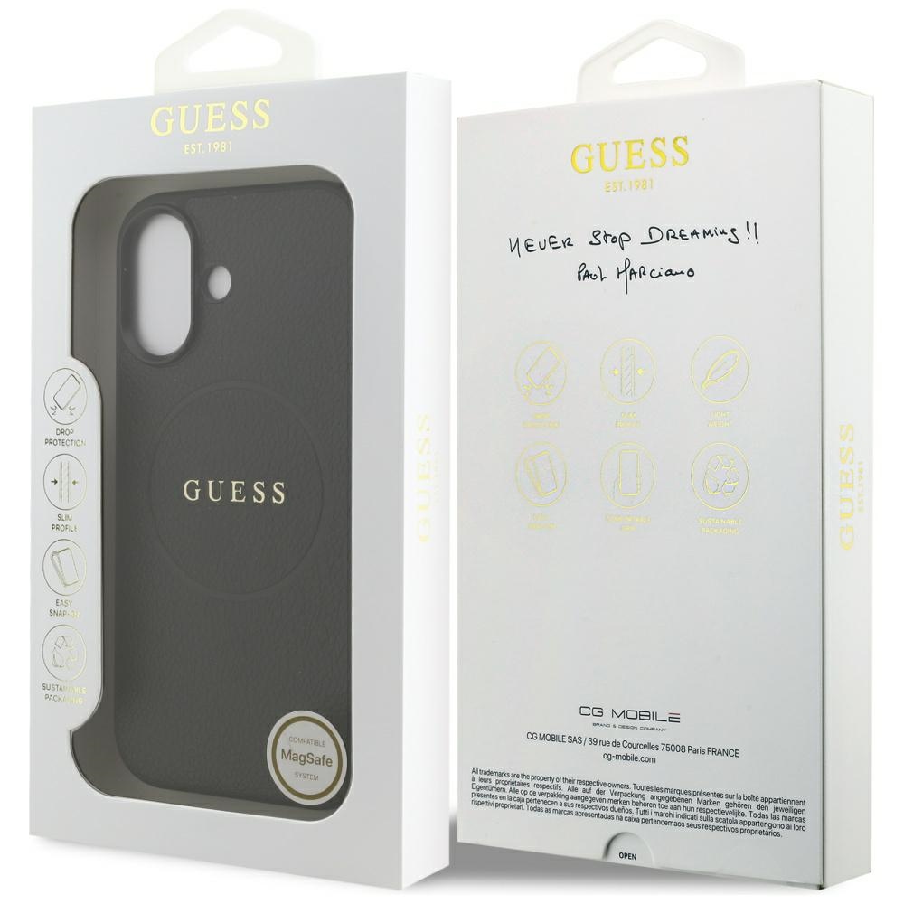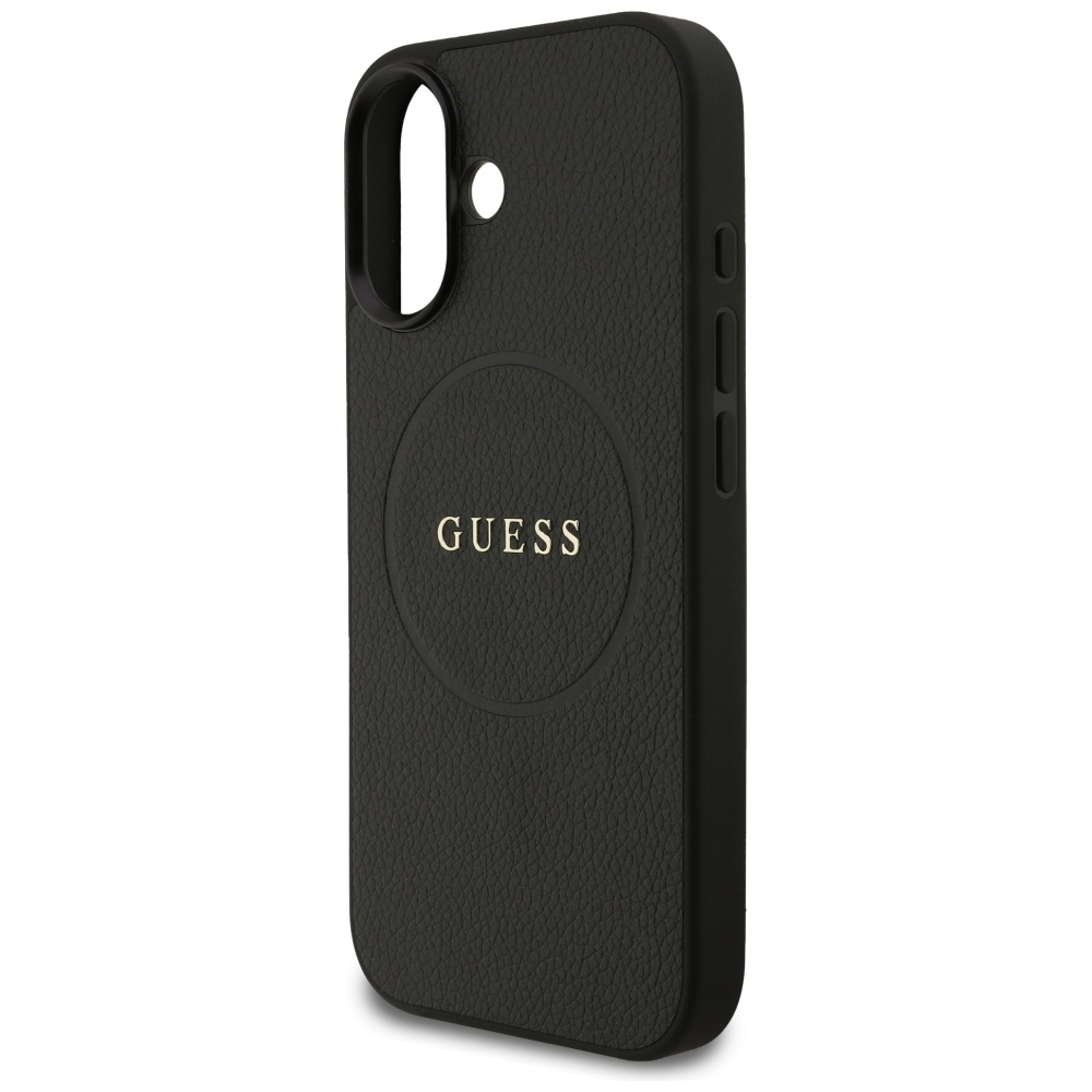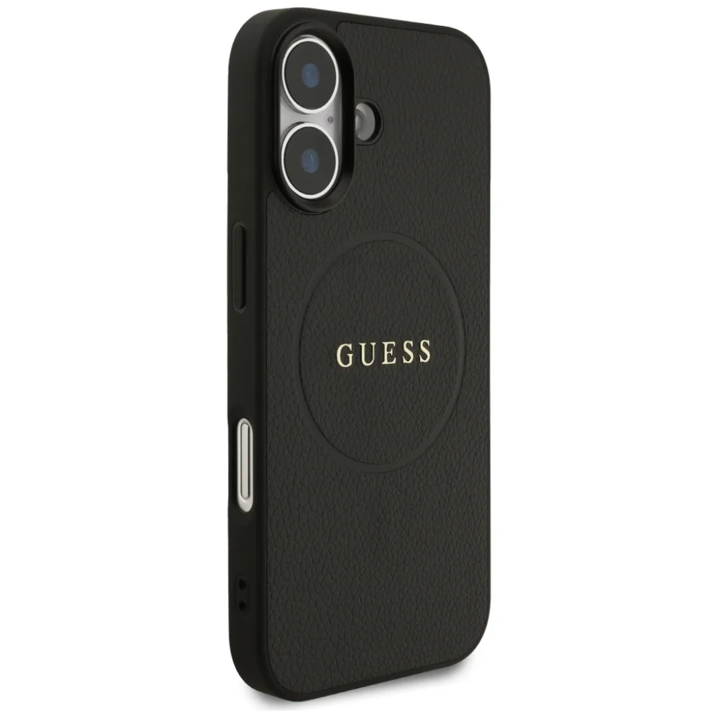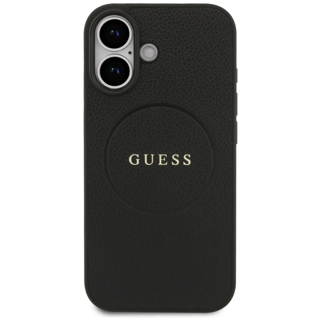 A tok jellegzetes, finoman szemcsés textúrája a valódi bőr tapintását idézi, amely kényelmes fogást biztosít és ellenálló a karcolásokkal szemben. A hátlap közepén elhelyezkedő, letisztult körgyűrűbe ágyazott arany Guess logó azonnal felismerhetővé teszi a márkát és exkluzív megjelenést kölcsönöz a telefonodnak.