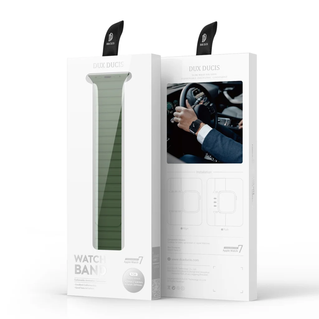 Adj stílust órádhoz! A Dux Ducis Strap (LD Version) sorozat elegáns és kényelmes mágneses pántja irodai és sportutakra egyaránt alkalmas. Az öv a részletekre való kivételes odafigyeléssel készült. Puha és kényelmes, szabadon állítható. A mágneses pántot nagyon könnyű felvenni – csak két mozdulat, és kész. A karkötőbe ágyazott erős mágnesek tartják az órát a csuklón. A szíj hossza 140-230 mm kerületű csuklóhoz igazodik. 22 mm-es fültávolságú órákhoz illeszthető.
