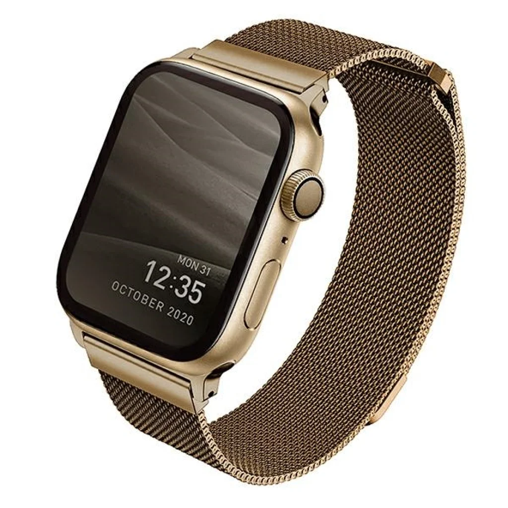 Az UNIQ Dante kifinomult szíj Apple Watch-hoz, amely magas minőségű, könnyű rozsdamentes acélból készült. Az ellenállhatatlan hálós szerkezet tökéletesen körülöleli a csuklót, kivételes kényelmet nyújtva. Az elegáns mágneses csattal van kiegészítve, amely megkönnyíti a szíj könnyű és tökéletes beállítását. Teljes mértékben állítható hosszúságú, kétrészes kialakítással a tökéletes illeszkedés érdekében. Az elegáns mágneses zár megkönnyíti a szíj csúsztatását és rögzítését.