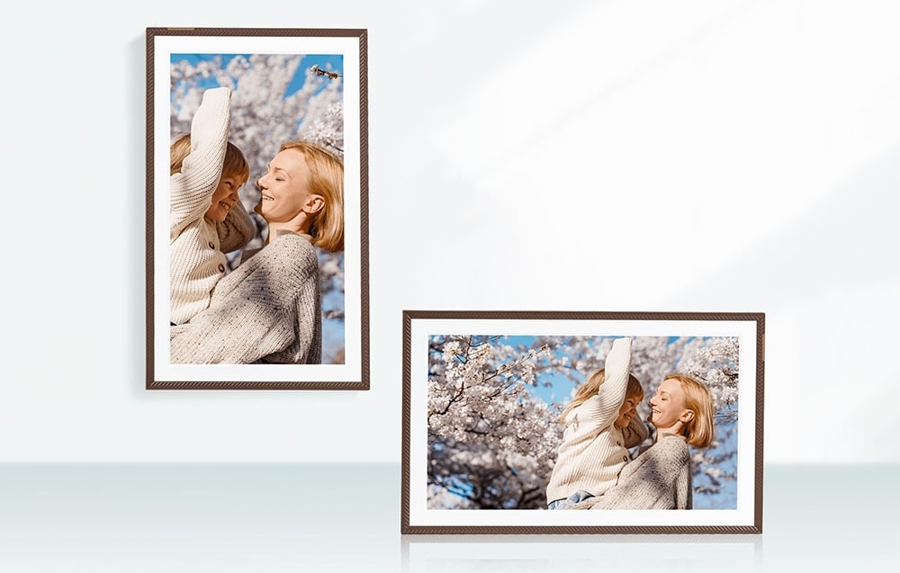 Függőlegesen, vízszintesen? Automatikus forgatás: A keret maga is felismeri a fénykép tájolását, és beállítja a pozícióját - az automatikus elforgatás funkció biztosítja, hogy minden felvétel tökéletesen nézzen ki, akár függőlegesen, akár vízszintesen helyezi el a keretet. Helyezheti polcra, íróasztalra vagy komódra - mindenhol elegánsan fog kinézni.