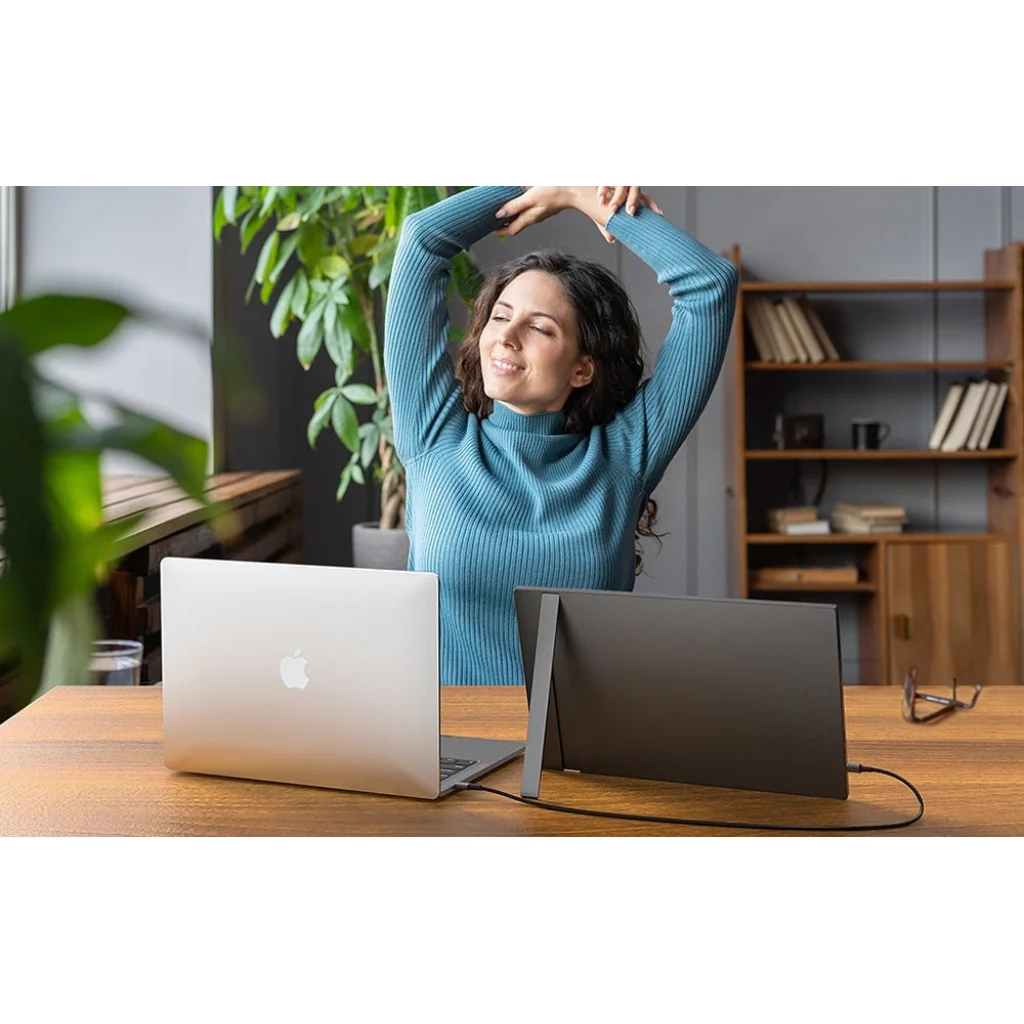 Az Arzopa Z1C 16,1'' hordozható monitor kényelmes választás azoknak, akiknek szükségük van egy extra képernyőre - otthon, üzleti úton vagy távoktatás közben. Kompakt méretének és karcsú kialakításának köszönhetően könnyen elfér a laptop táskájában, könnyű súlya (780 g) pedig nem nehezíti meg a poggyászát. Jó választás, ha úgy szeretné bővíteni a munkaterületét, hogy közben nem foglal sok helyet.