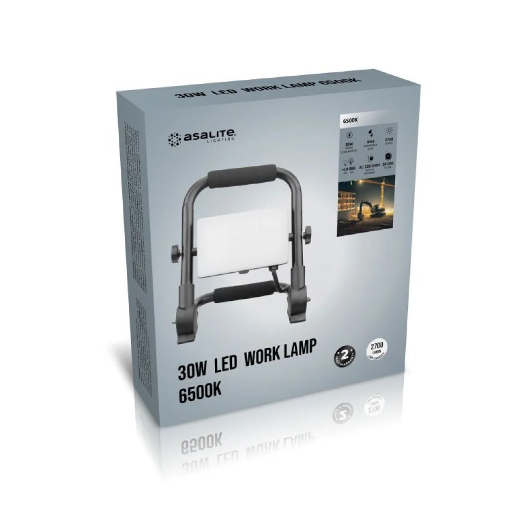 A 30W teljesítményű Asalite LED Hálózati Munkalámpa piaci átlag feletti, 2700 lumen fényerőt biztosít 120°-os beterítési szögben, ami a 80W-os hagyományos fényforrásnak felel meg.