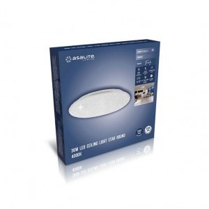 A LED fényforrásokat tartalmazó Asalite LED Mennyezeti Lámpa a jó minőségű és megbízható Led-chipeknek és drivernek, valamint az elegáns kerek formának és a csillagmintás búrának köszönhetően dekoratív és hosszú távú megoldást jelentenek a lakásának egyenletes, esztétikus és a szemnek is kellemes megvilágítására.